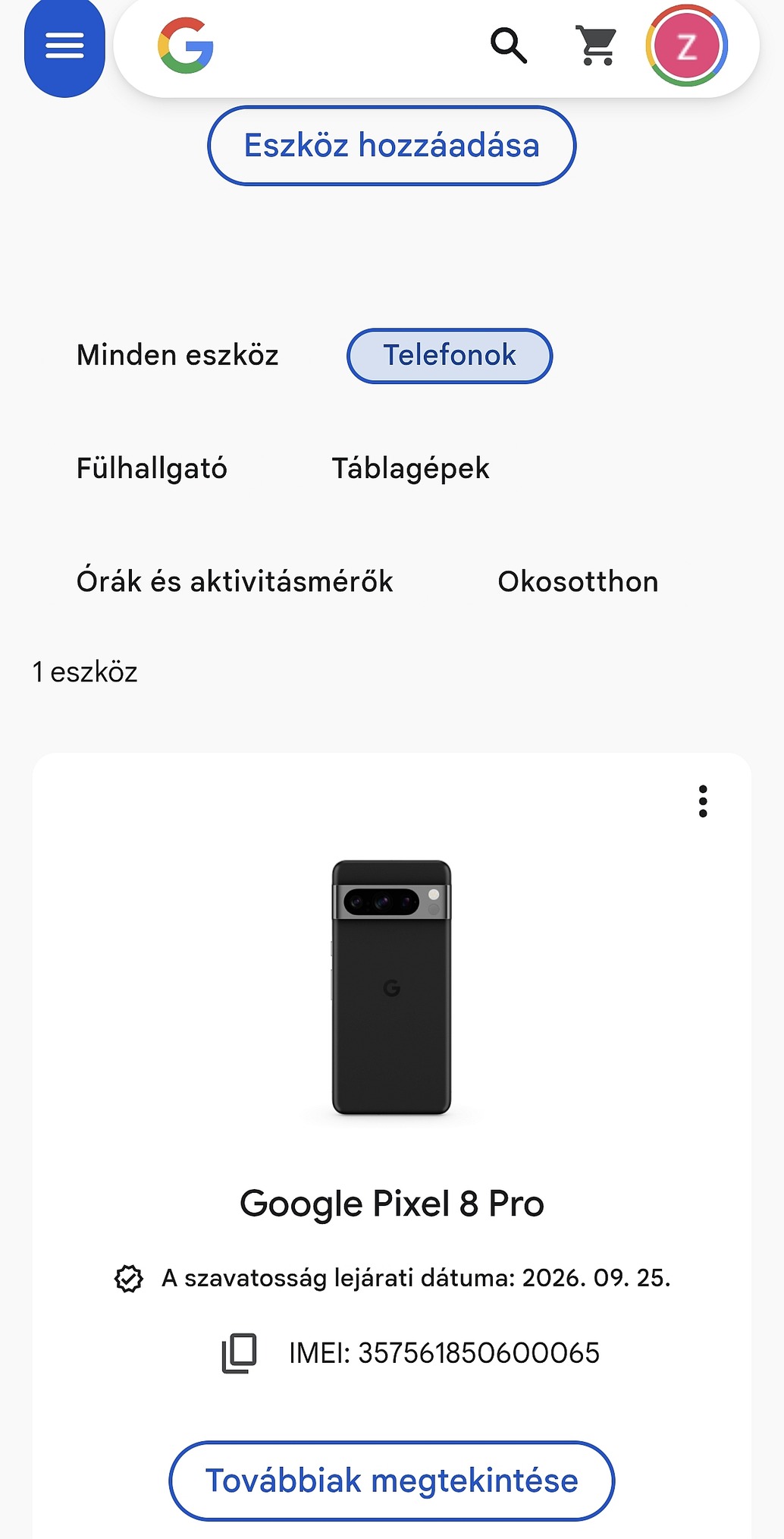 Eladóvá vált Google Pixel 8 Pro 5G 128 GB telefonom.
