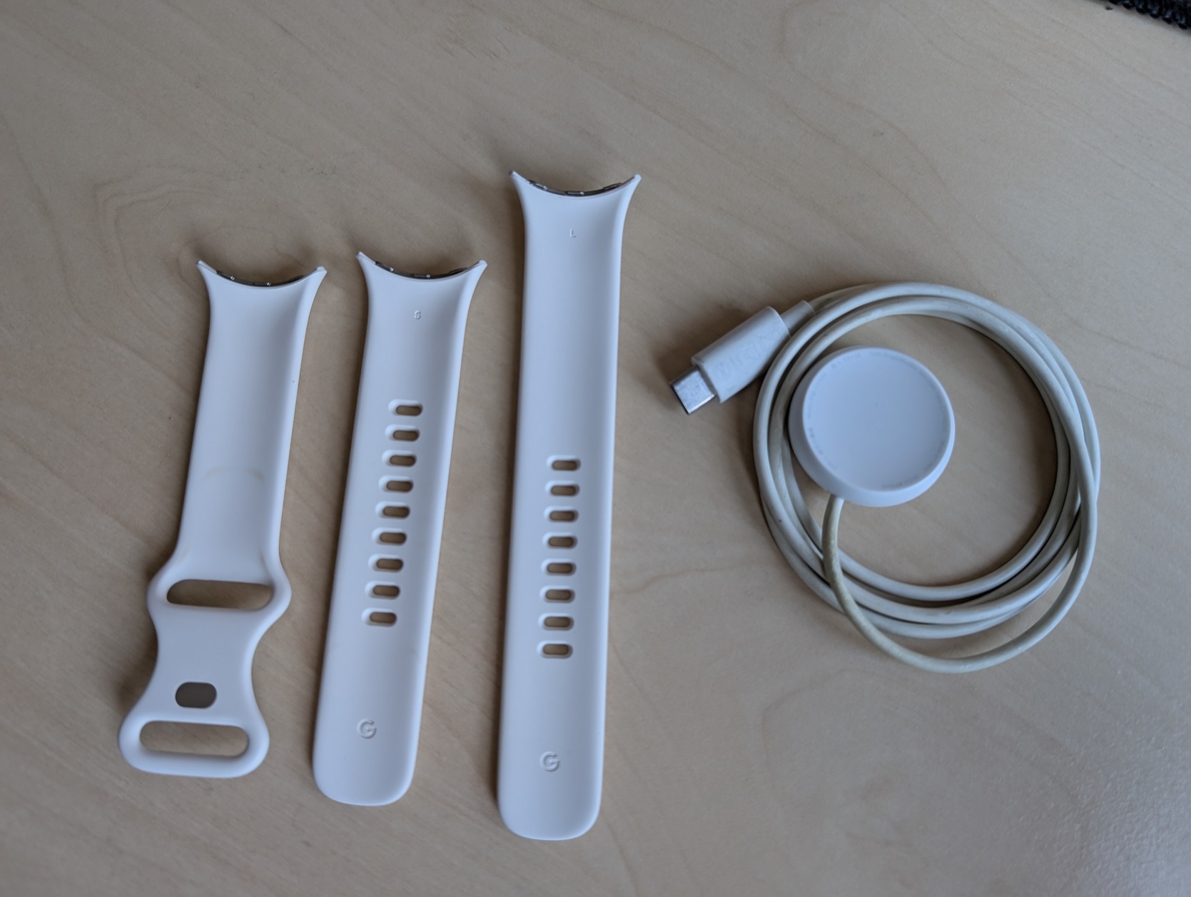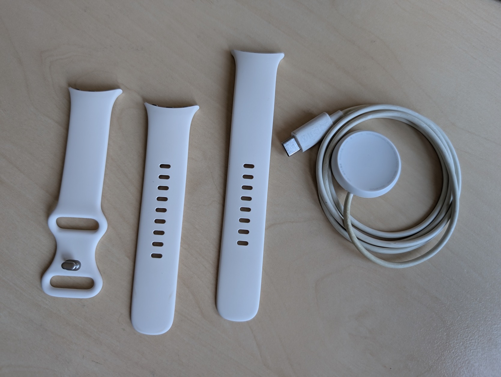 Google Pixel Watch használt gyári töltő, szíj és pár nem gyári kiegészítő