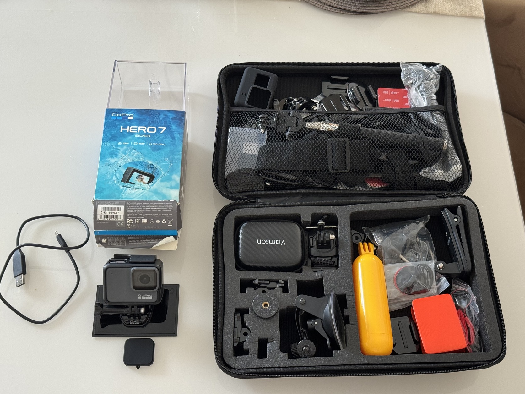 Eladó a címben említett szép állapotban lévő GOPRO HERO 7 Silver akciókamera, dobozával, vásárlást igazoló dokumentumával, gyári tartozékaival és extra kiegészítőkkel.