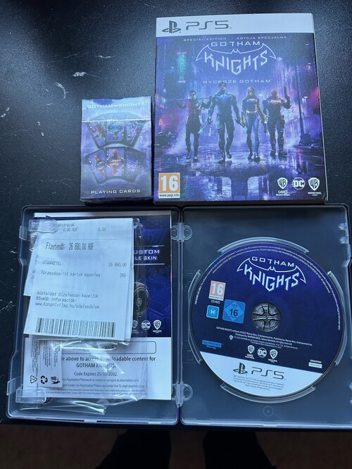 Makulátlan állapotban eladó Gotham Knights Special Edition, fémtokban, bontatlan Playing Cards-al, érintetlen DLC (233 Batcycle Skin) kóddal átvehető Solymáron bármikor, vagy hétköznap munkaidőben Budapest V. kerületében a Vigadó téren.