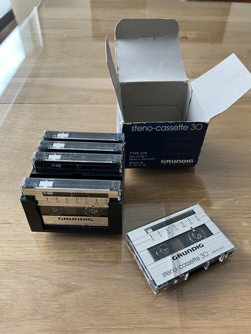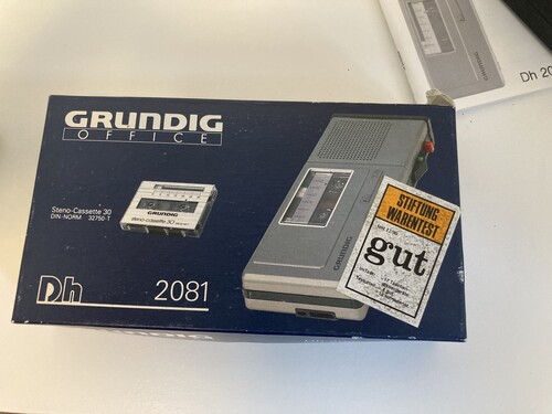 Működő, vintage Grundig DH 2081 diktafon, soha nem használt, eredeti dobozban, 5 db üres kazettával.