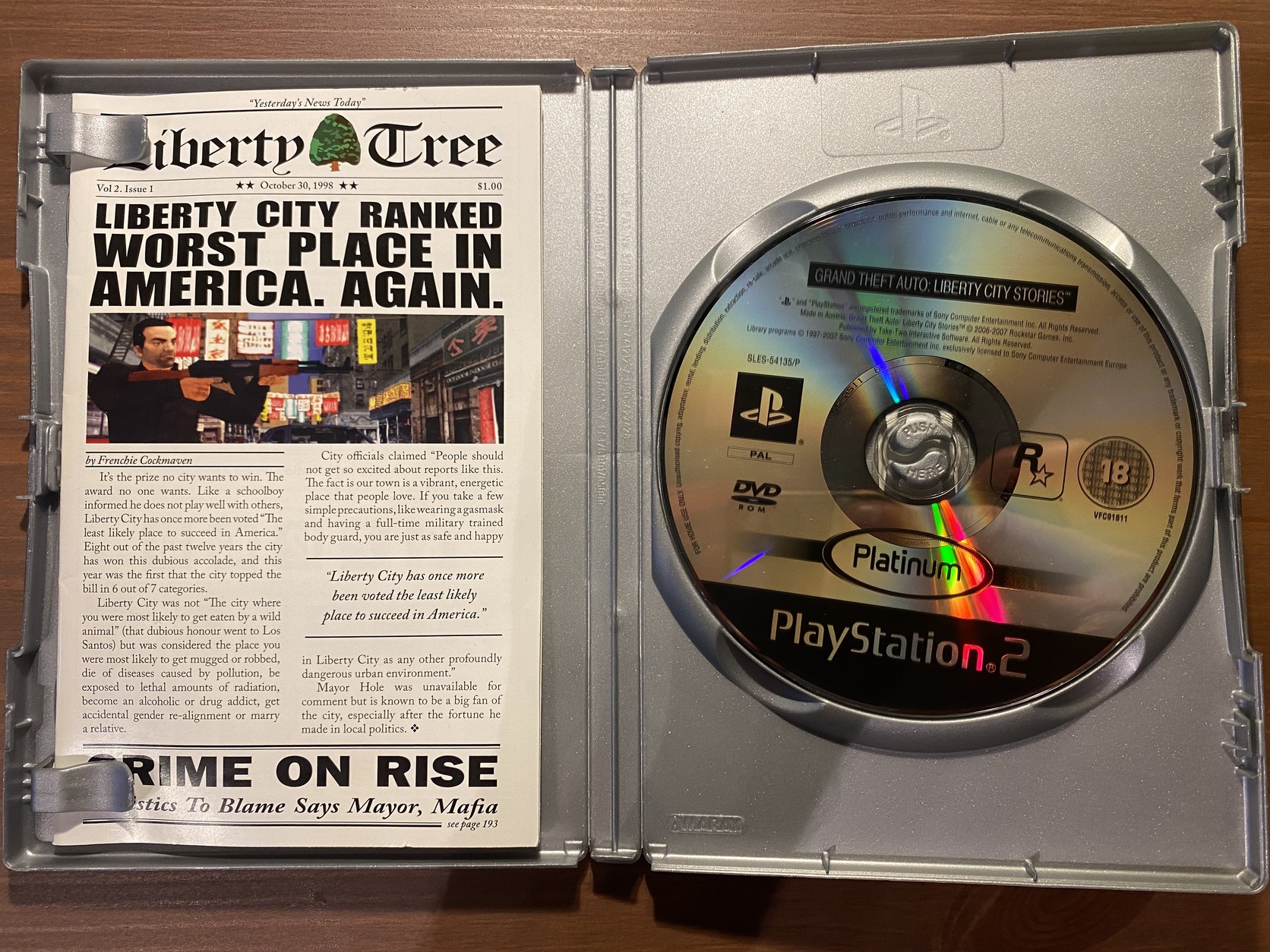 GTA Liberty City Stories PS2-re. A lemez jó állapotban van, végigjátszás során semmilyen hibát nem tapasztaltam.