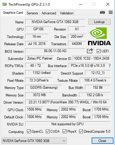 GTX 1060 3GB (Samsung RAM)