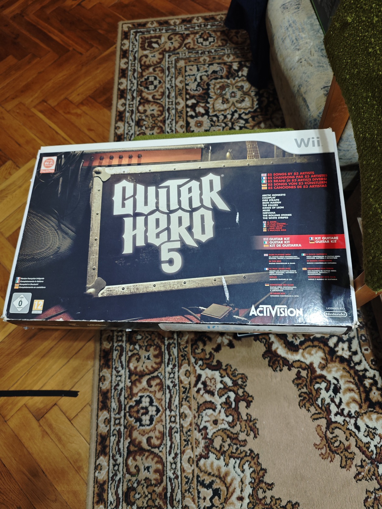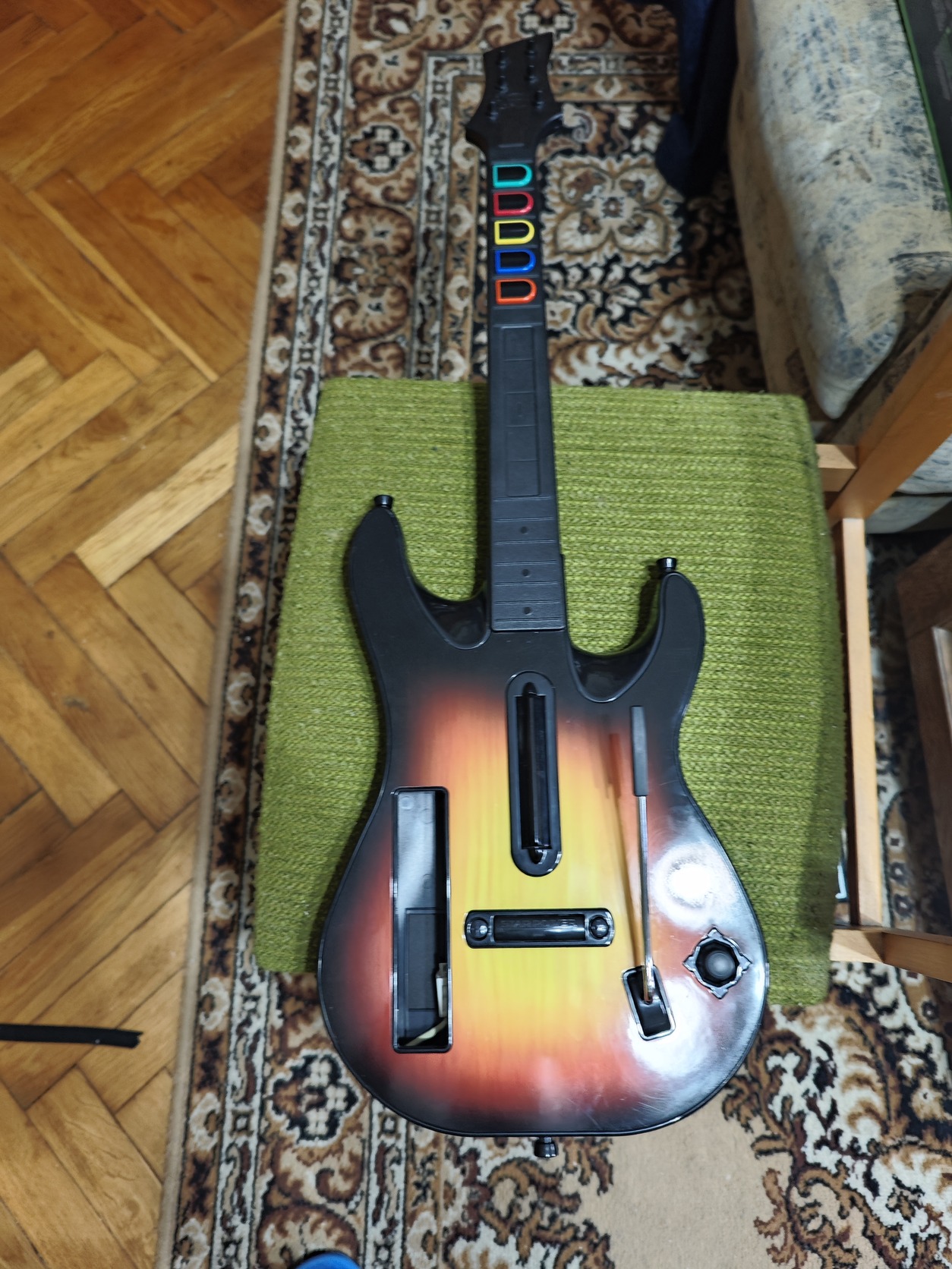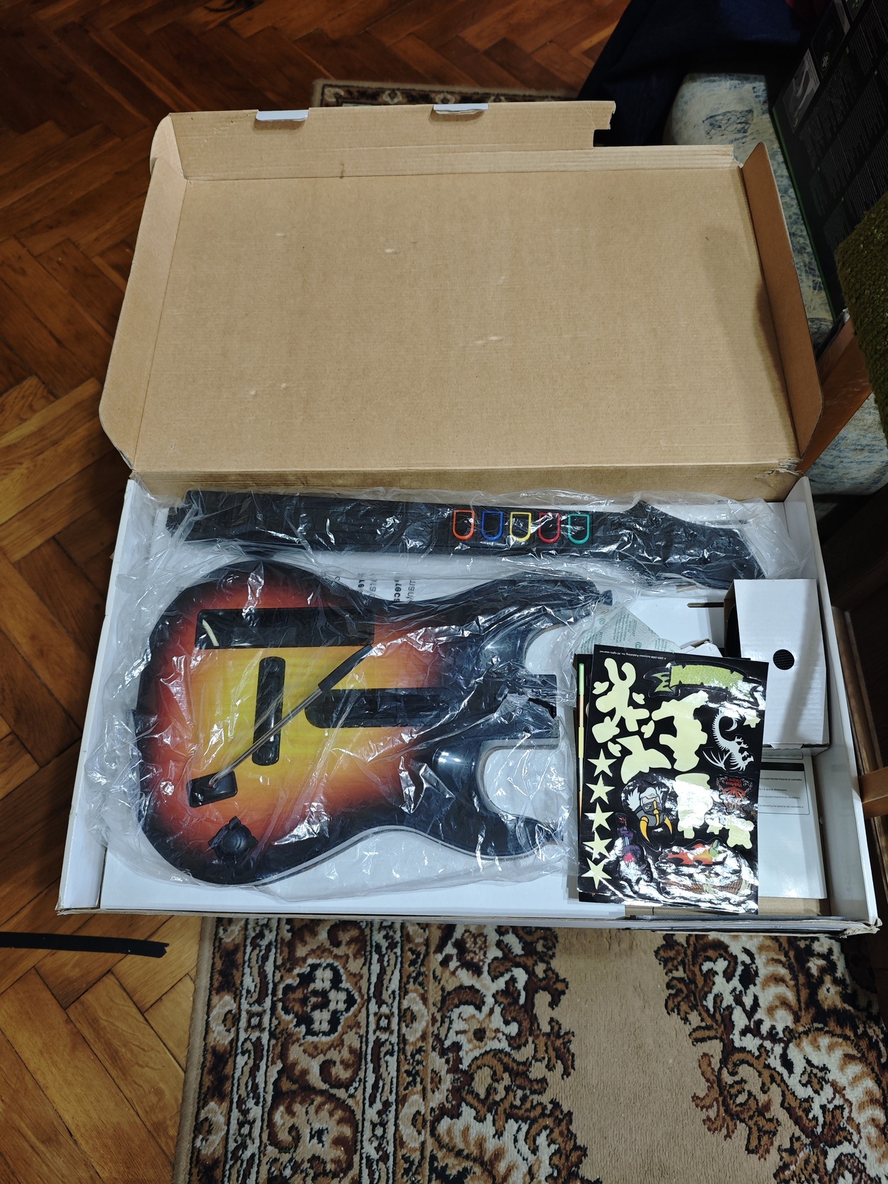 Eladó egy Guitar Hero 5 gitár dobozában játék nélkül,matricák nagy része fel volt ragasztva de le lett szedve,maga a gitár kisebb karcoktól és matrica nyomoktól eltekintve jó állapotban van.A doboza szakadt,néhol ragasztott.
