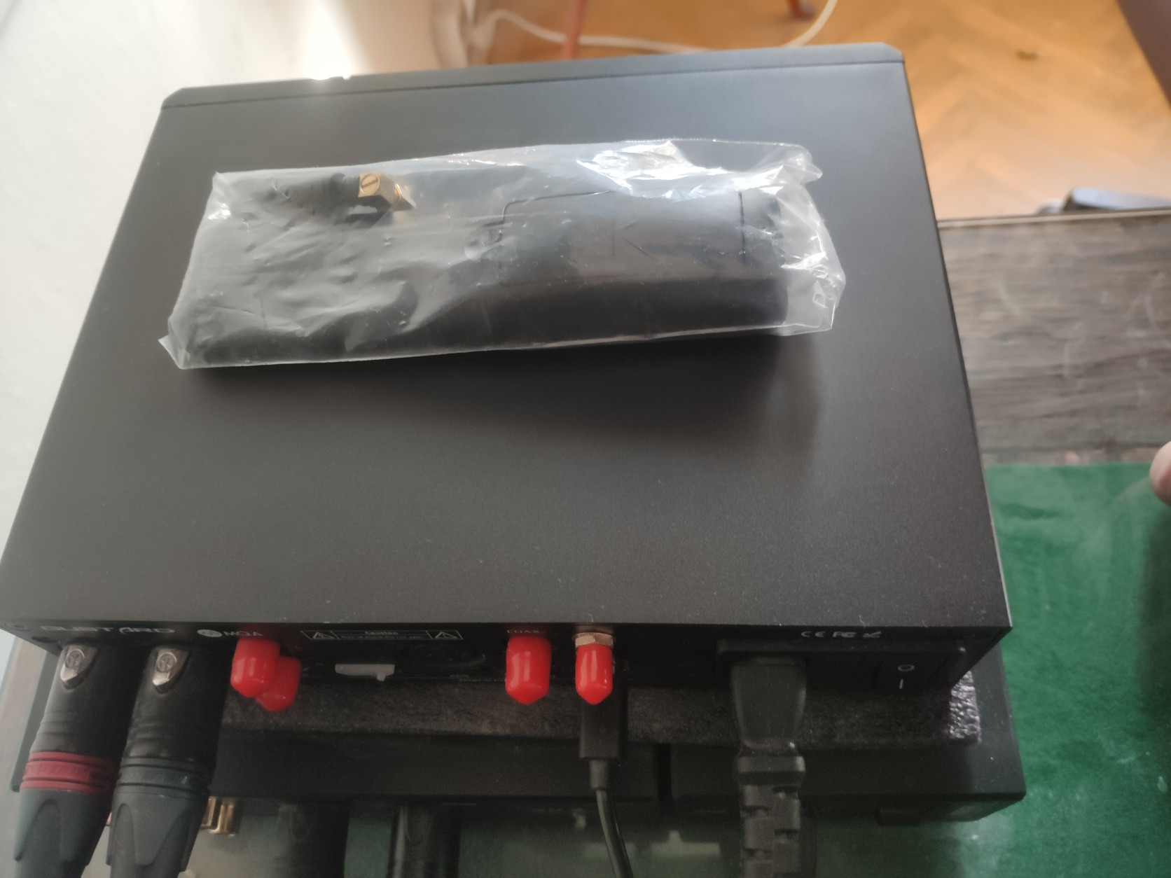 A tetején van néhány nagyon apró, csak közelről észrevehető kopásnyom. A távirányító nem volt használva, a DAC működése kiváló.