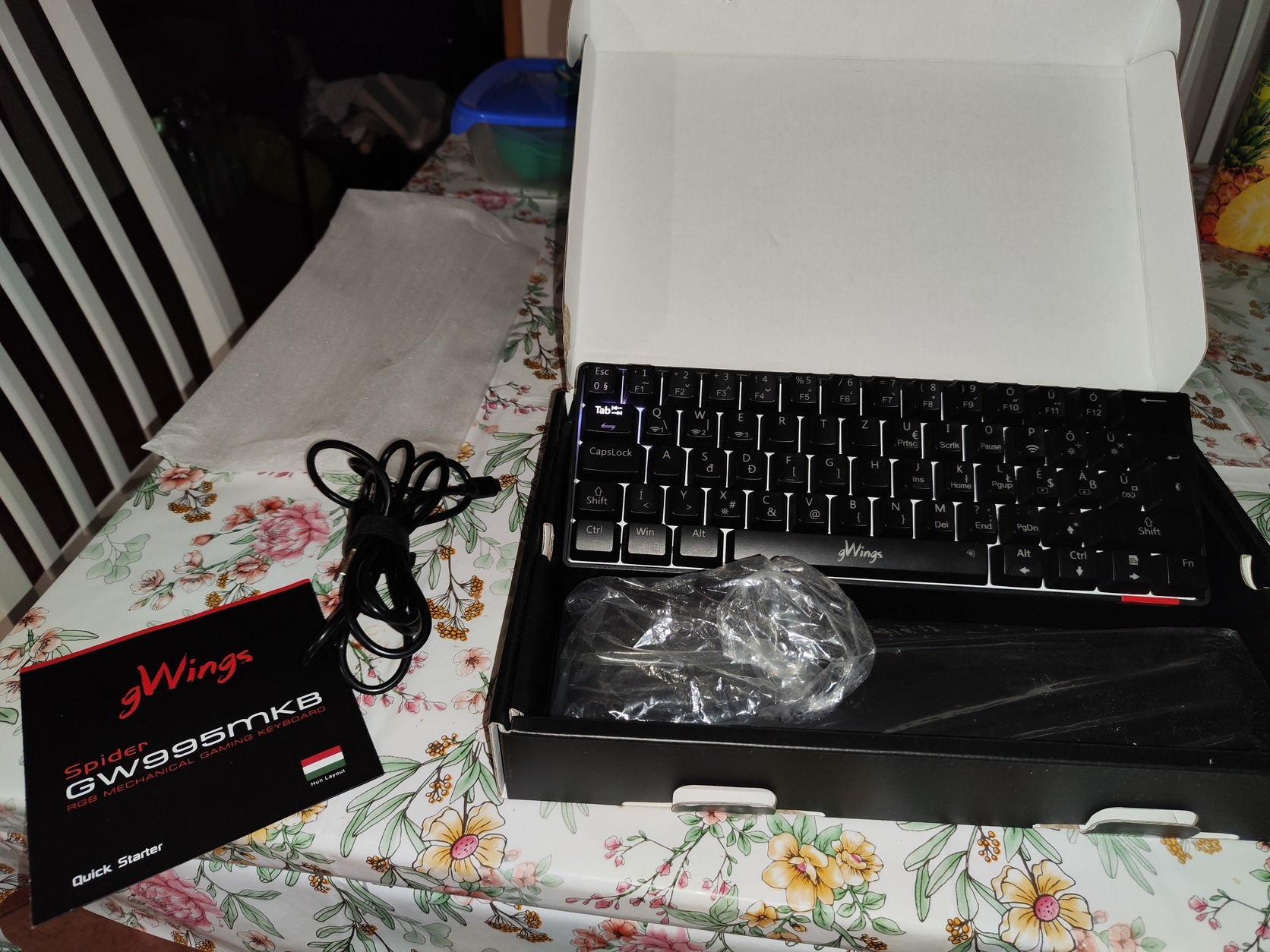 Első ránézésre a GW995MKB egy „kompakt”-, vezetékes-, gaming billentyűzet, az elengedhetetlen mechanikus billentyű-készletével és programozható háttérvilágításával.