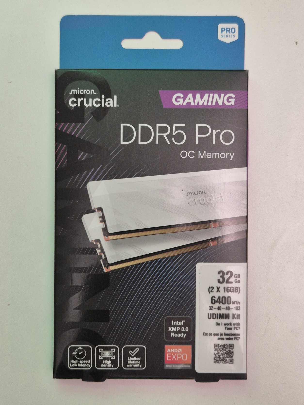 gyors Cruicial DDR5 32GB kit (2x16GB), 6400Mts, cl32, OC, hutobordas, feher bontatlan, garancialis