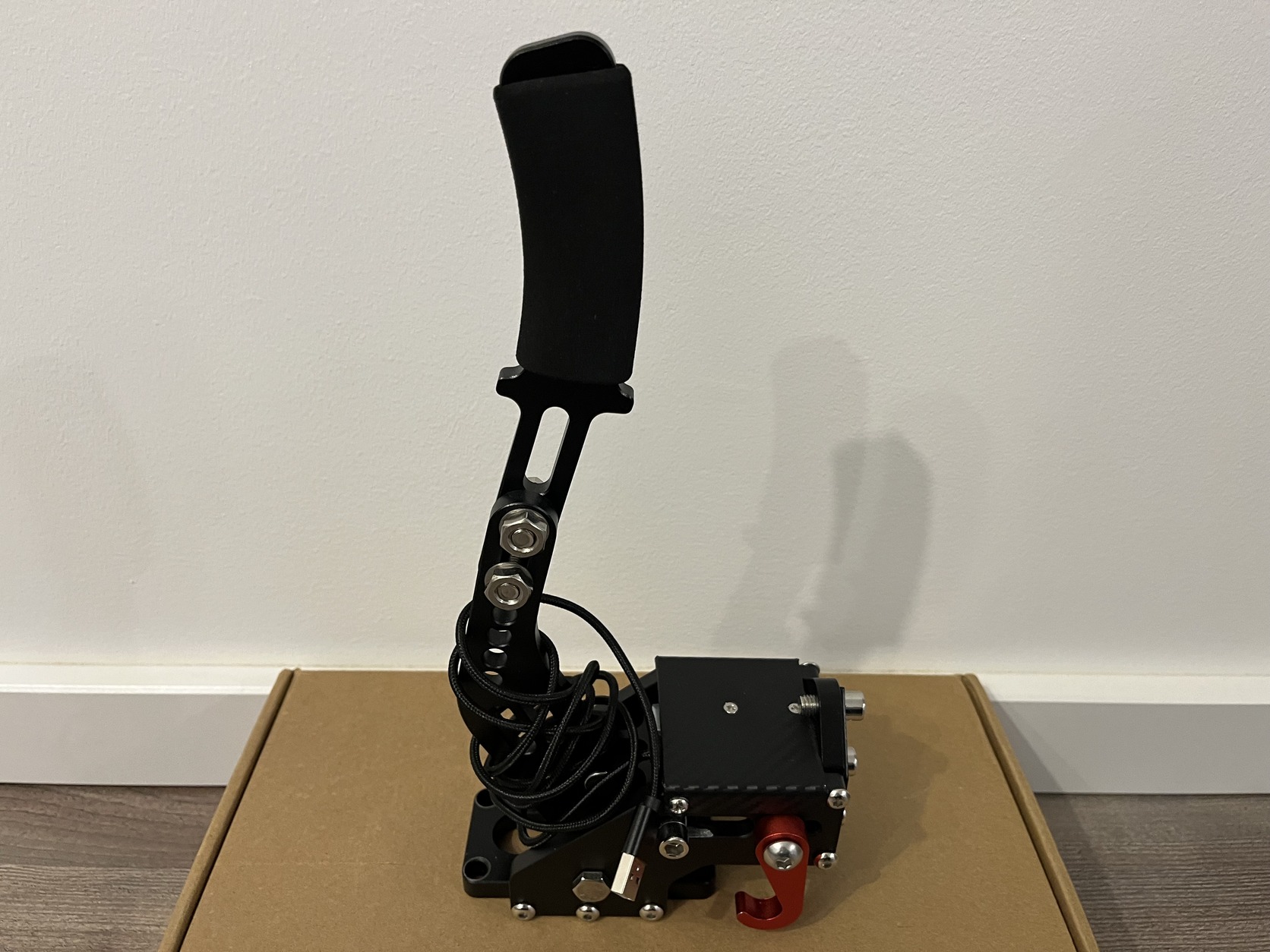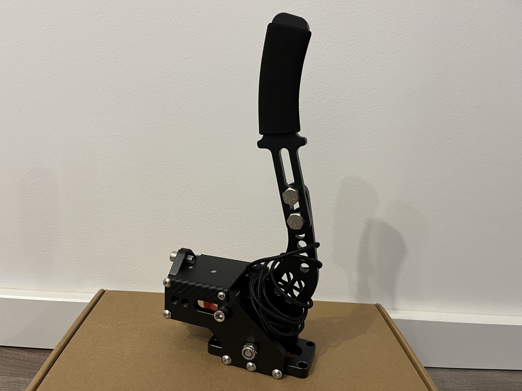 Kínai minőség, a kar teljes fizikai útja hosszabb, mint amit a szenzor érzékelni tud, viszont rallyra, driftre így is alkalmasabb, mint egy gombra állított kézifék. Némi barkácsolással biztosan javítható, engem annyira nem zavart, hogy foglalkozzak vele.