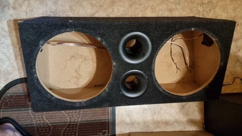 Mély hangszóró nélkül eladó láda apróbb hibával a képen latható.