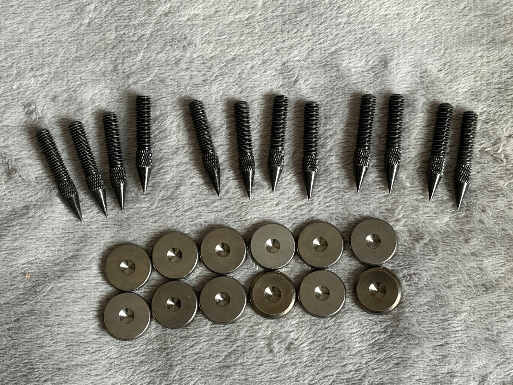 Eladó a képeken látható 12 db hangfaltüske, plusz ugyanennyi alátét.