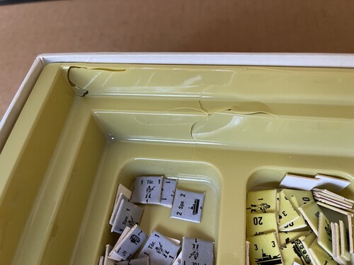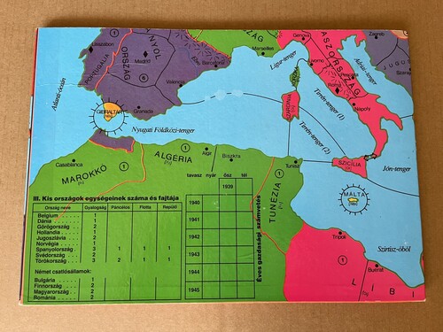 Eladó a képeken látható Harc Európáért társasjáték. Nem mai darab, ennek megfelelő a doboz állapota is, kívül itt-ott kisebb kopás, belül a műanyag tálcán némi repedés. A jelzőket megszámoltam, a BGG-n látható két képpel összehasonlítva, elvileg megvan mind a 397 db. Szétválogattam őket, ahogy látszik is a képen, de postázva valószínűleg össze-vissza fognak borulni. A dobókockák hiányoznak, a játék túl bonyolult volt gyerekkoromban, így csak a kockákat tudtam hasznosítani belőle.