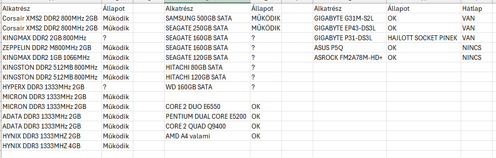 Táblázatban minden állapottal.