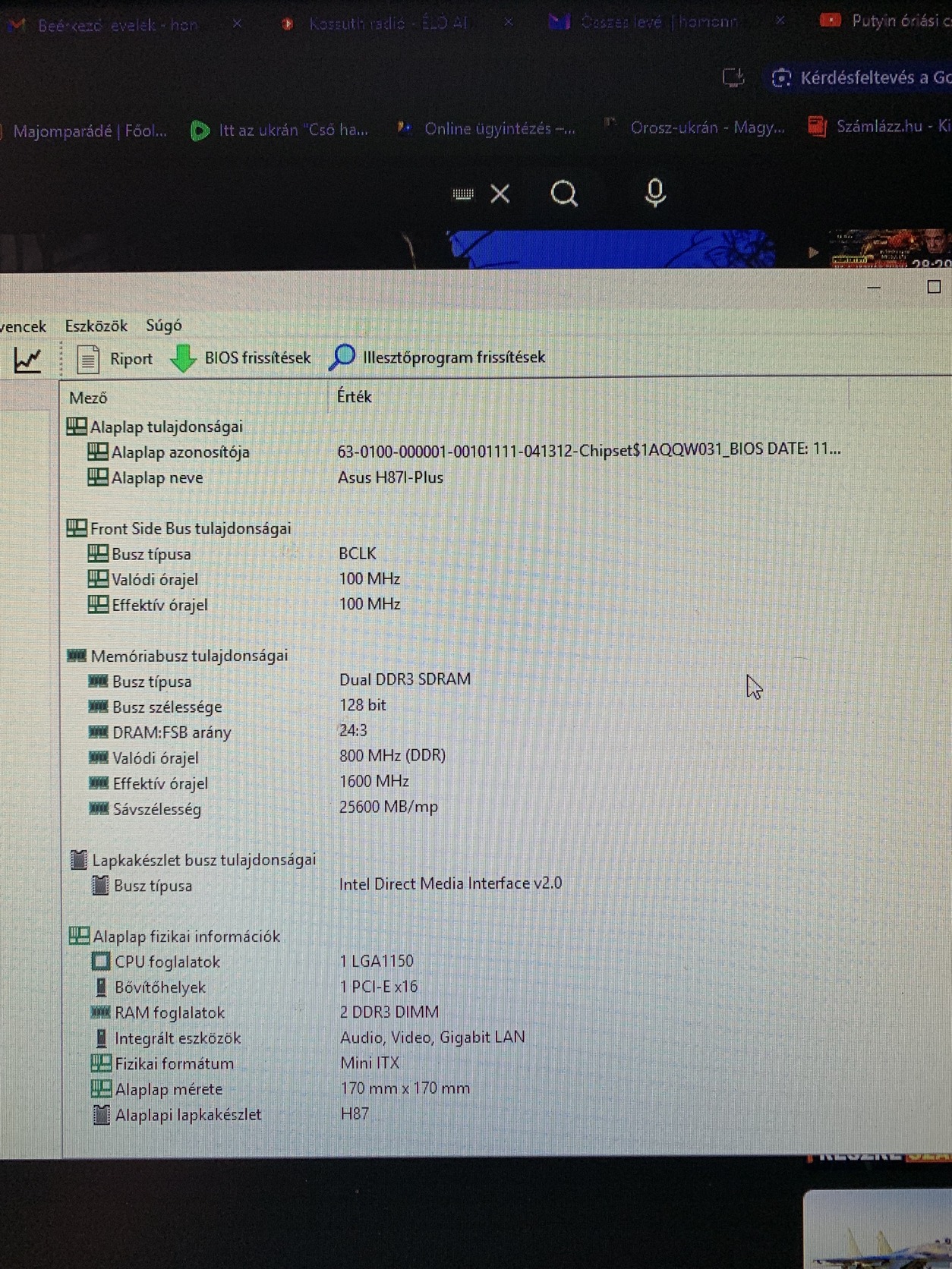 Asus H87i-Plus ITX alaplap+ hátlap
