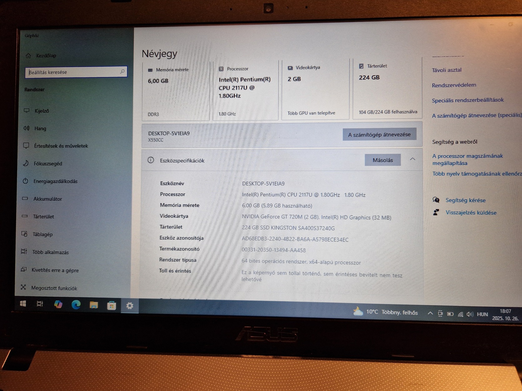 Eladó a Asus X550CC laptop a következő specifikációval: