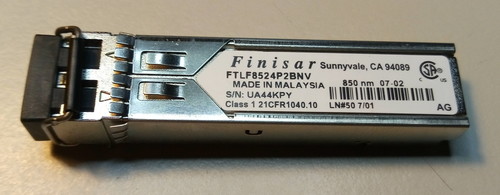 A pontos típus: Finisar FTLF8524P2BNV. Az utolsó „V” jelentése: 1x, 2x, 4x Fibre Channel and Gigabit Ethernet. (A tapasztalatok szerint nem minden ethernet switch fogadja el gigabit SFP-nek.)