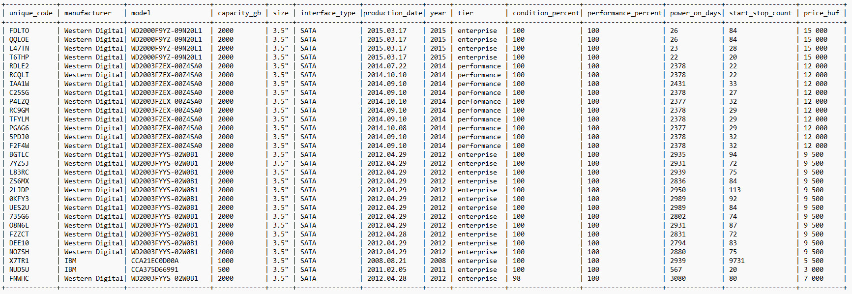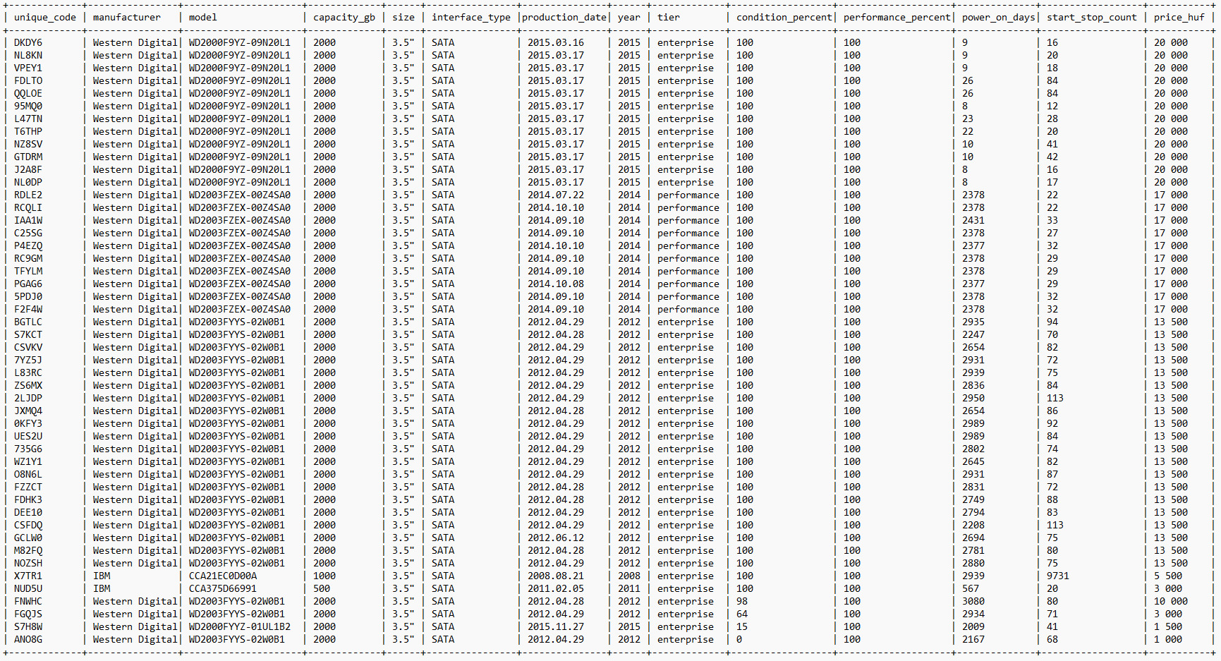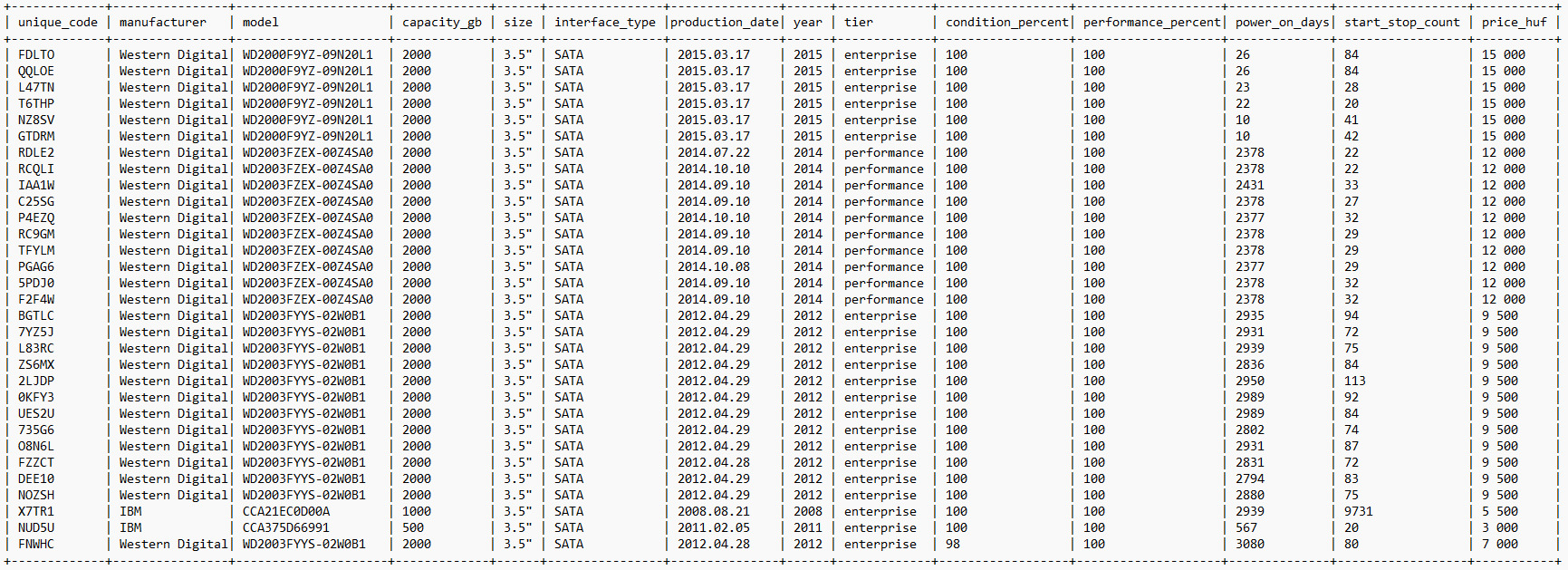 Minden meghajtó csomagolásán van egy általam adott egyedi azonosító (unique_code). Kérlek, érdeklődés/rendelés esetén mindig ezt az azonosítót add meg, így pontosan be tudom azonosítani a kiválasztott darabot.