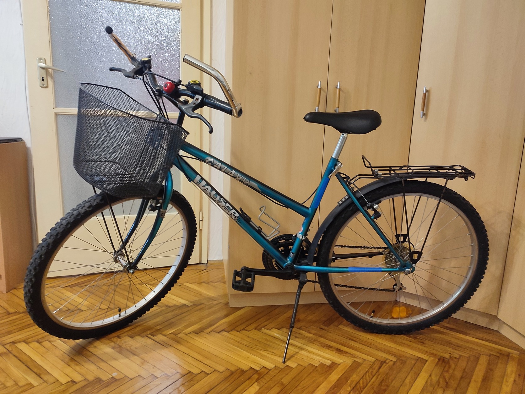 Vadonatúj, 0 perces belső gumi elől -hátul. Elől kosár, hátul csomagtartó. Hátsó sárvédő, vázon fényvisszaverő csíkok. Friss lánckenés a könnyebb tekerhetőségért.