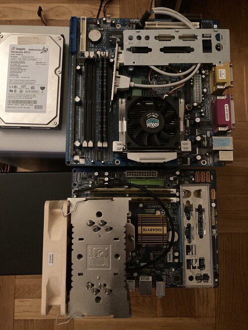2. Fekete ASUS mini torony 1500 Ft3. Shuttle MV43PN alaplap (AGP+2PCI+CNR)+hátlapIntel Celeron 1.7 GHz Willamette Socket 478 processzor+hűtő, 2x512 MB DDR266 ram. Az alaplap érdekessége hogy DDR és SD ramot is tud kezelni. Sajnos a hátsó 2 USB kimenet nem működik, ezért adok hozzá egy alaplai USB kivezetést. 3000 Ft eladva
