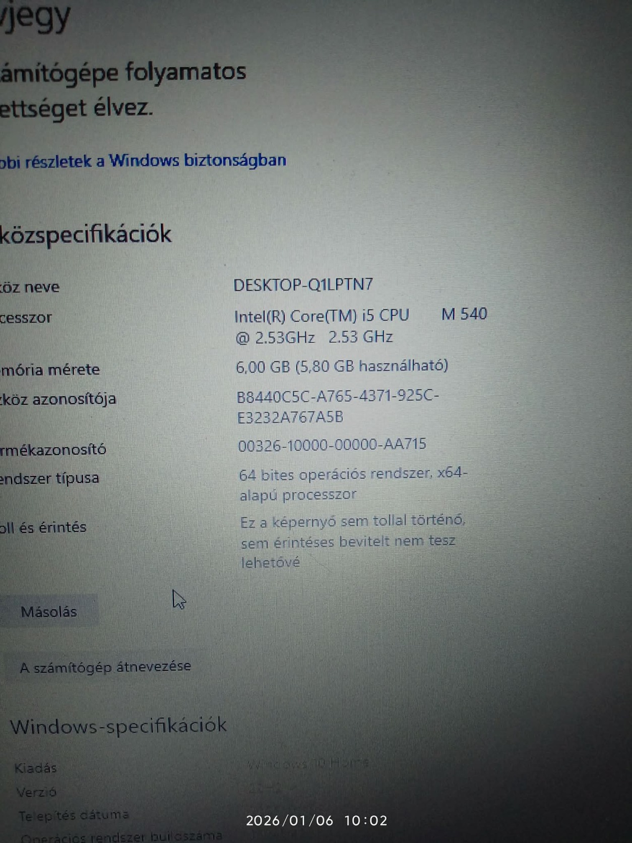 CPU: Intel Core i5-540M (Arrandale SV, C2)