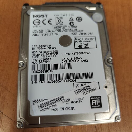 Eladó egy 1TB-os Sata3 HGST - 5400 rpm - 2,5" Notebook HDD.