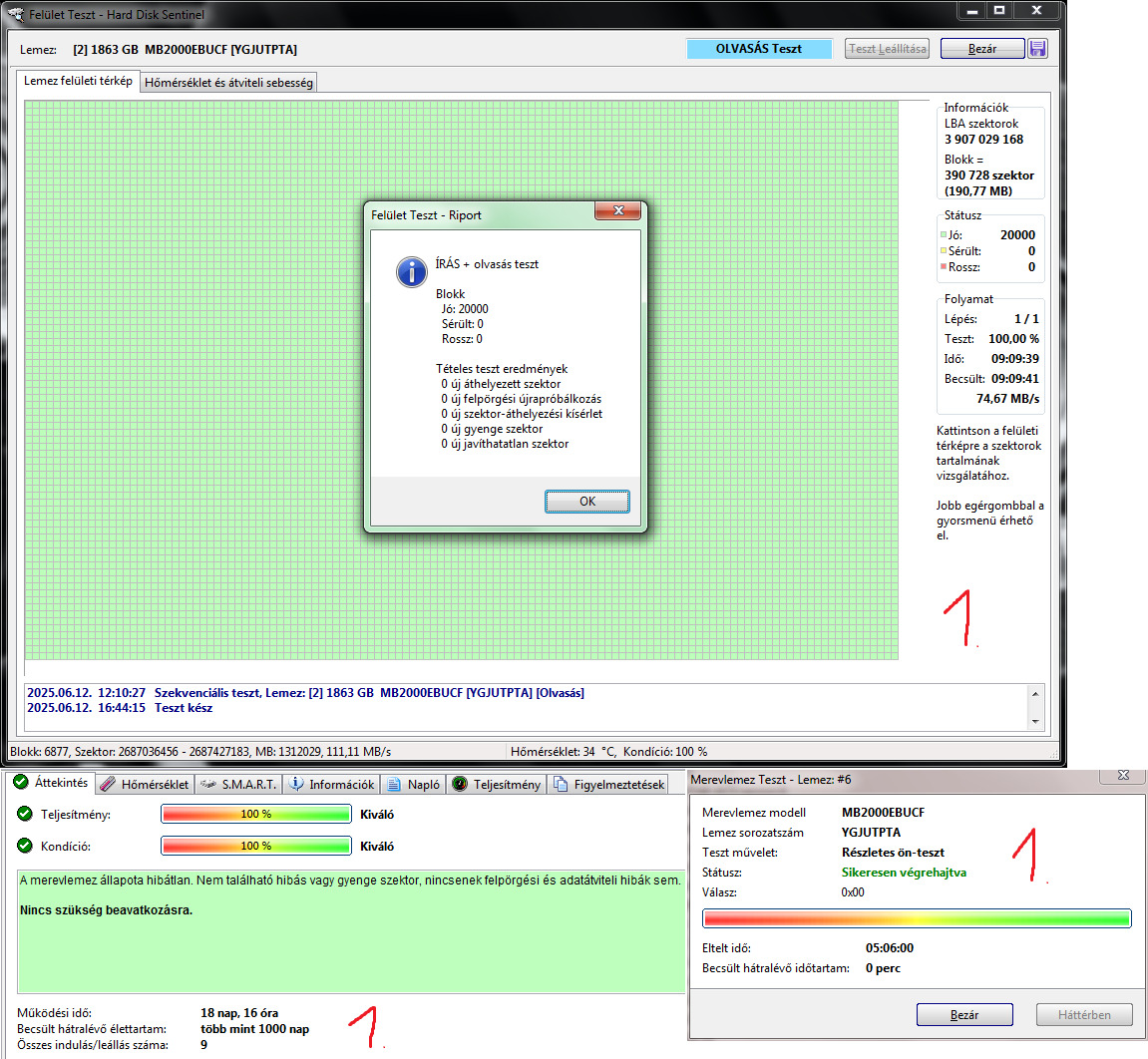 Teljes írás olvasás teszt és hosszú önteszt lefutott.