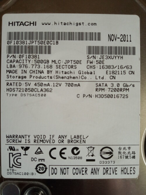 HGST 500 GB...