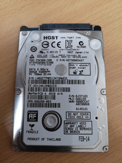 Eladó a képeken is látható 2,5" HDD - HGST HTS545050A7E680