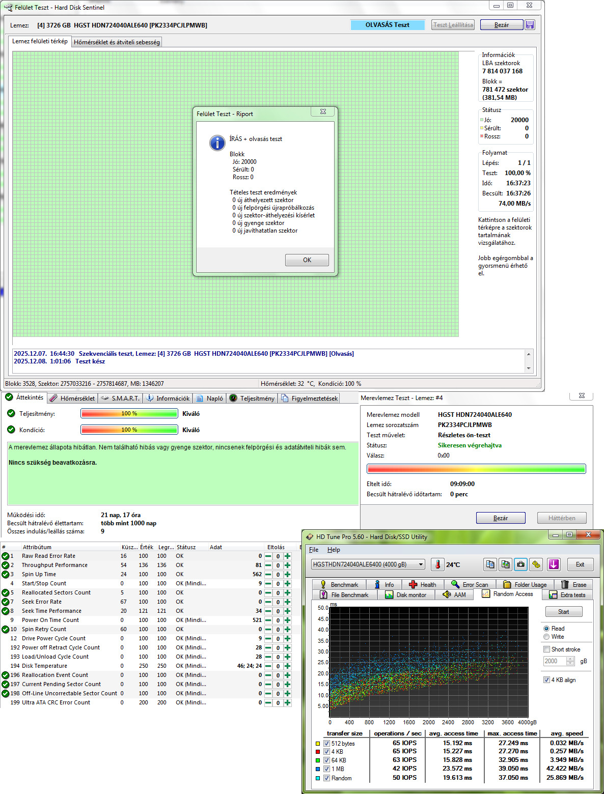 HGST HDN724040ALE640 4TB 7200RPM 64MB Cache - 21nap 17óra 9indulás