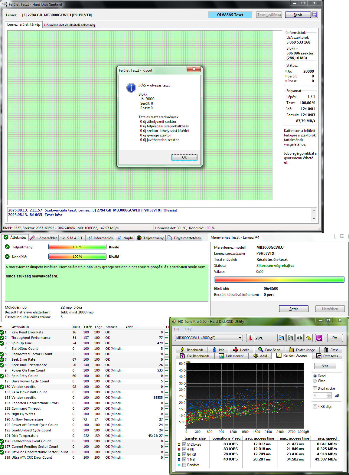 HP MB3000GCWLU (HUS724030ALA640) 3TB 7200RPM 64MB Cache - 22nap 5óra 5indulás - 20k - 6hónap garancia