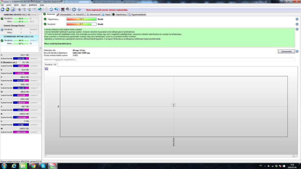 Seagate st2000dl003 2TB HDD 84% 6.500 FtWD WD20EZRX 2TB HDD 64% 6.000 Ft