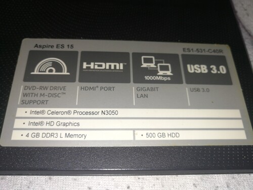 HIBÁS - Acer aspire ES 15