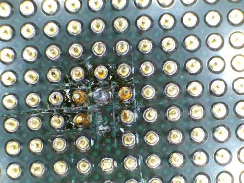 Nekem ezt a foglalatot hozta helyre és most tökéletesen megy a lap, pedig a rossz minőségű fotó ellenére is látható, hogy rendesen le volt rendezve. Forduljatok hozzá bizalommal, mert ha tényleg csak pár törött, hiányzó, vagy elhajlott láb miatt nem működik az alaplapotok, azt biztosan megjavítja.Mégegyszer köszönöm Mester!