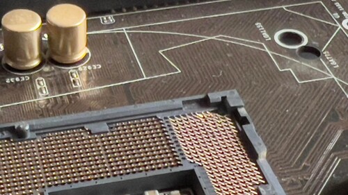 Pár CPU pin el van hajolva, illetve a felső PCI-e bepattintó fül hiányzik.(Ettől még rögzül a kártya)