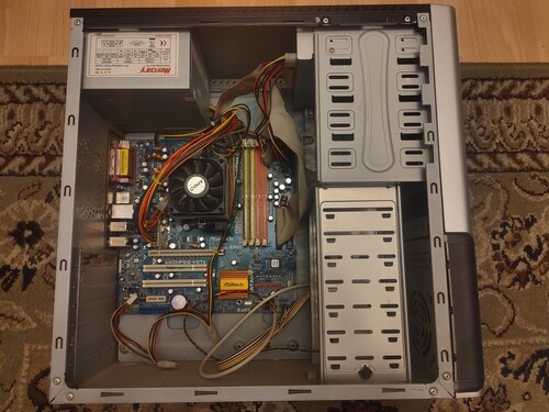 A gépház hibáját fotóztam, a videókártya résznél el van vágva, de így is használható, a takarólemez megtartja a videókártyát. 420w-os mercury csendes táppal. 2x1GB DDR2 memóriával. Winchester nélkül.