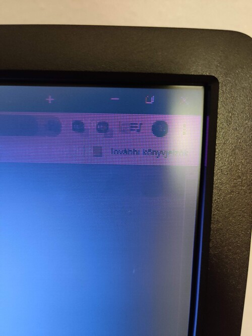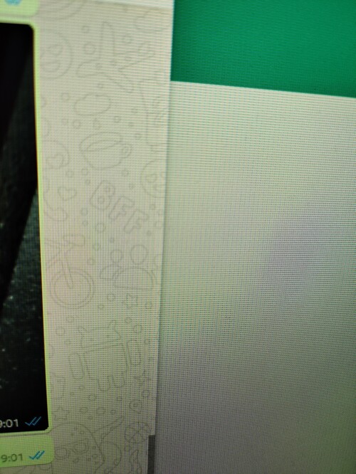 Dell U2312HM monitorom fura jelenséget produkál: képernyő jobb oldala teljesen pixeles és zöld, bal oldal hibátlan, kikapcsolva sötét lila a kijelző jobb oldala.