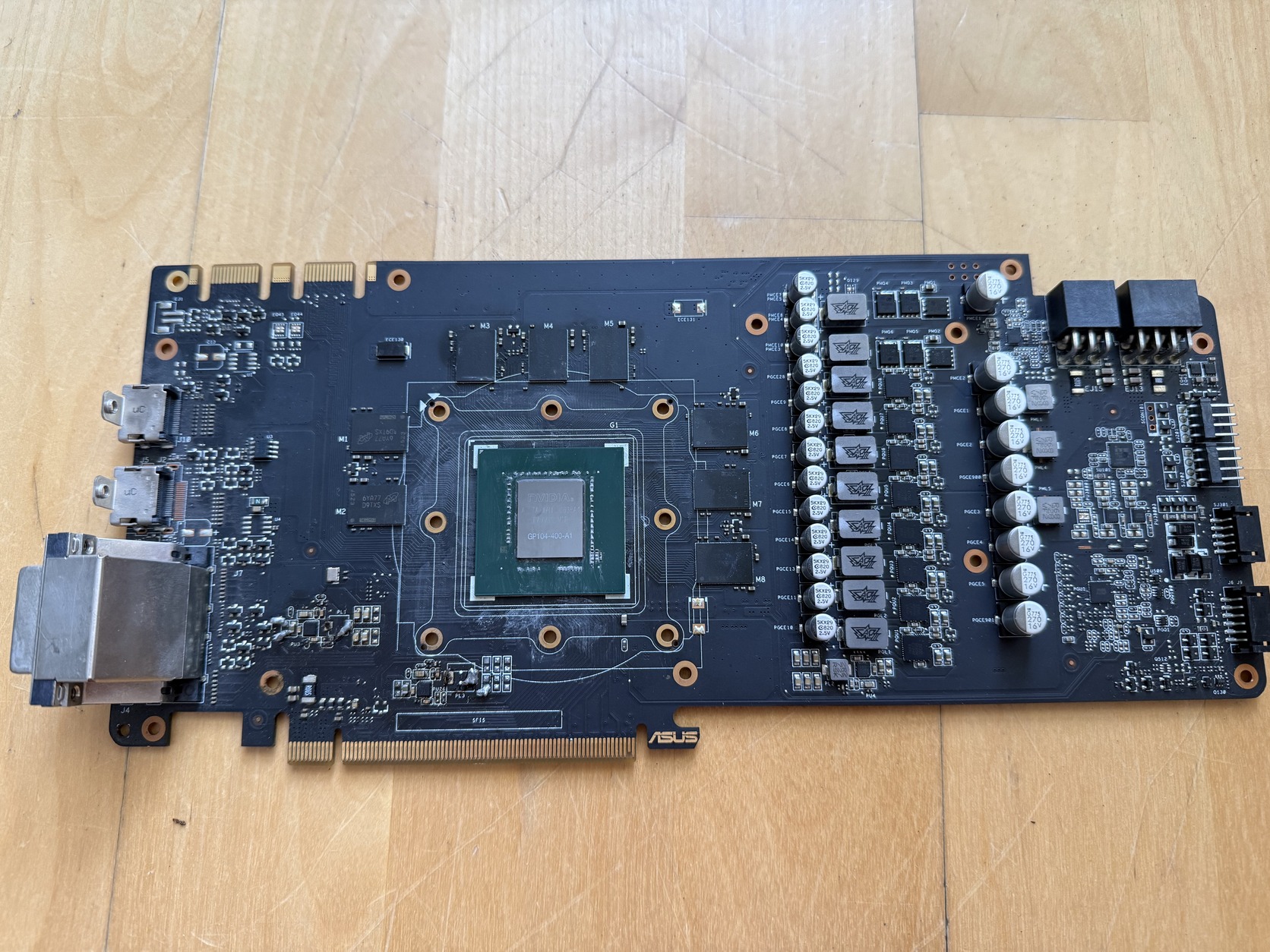 Eladó a képeken lévő egykor Asus STRIX GTX 1080 8GB. A GPU-től bal alul égett fet és kondik is voltak, javítási kísérlet után sem adott képet. Eredeti hűtője hátlapja sajnos nincs meg, csak az IO bracket. Alkatrészként eladó.