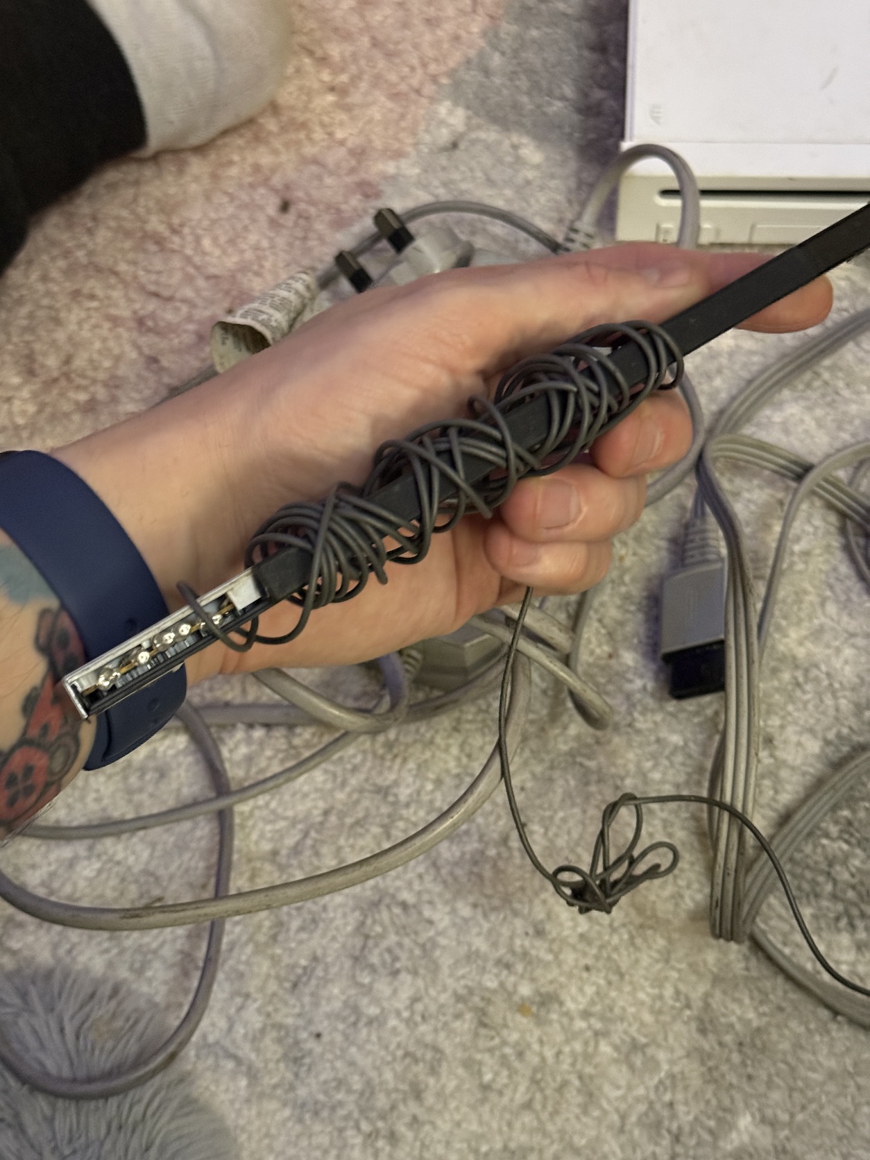 Adom hozzá a gyári tápegységet aminek angol csatlakozása van és a gyári RCA TV kábelt is. Meg van hozzá sensor bar is.