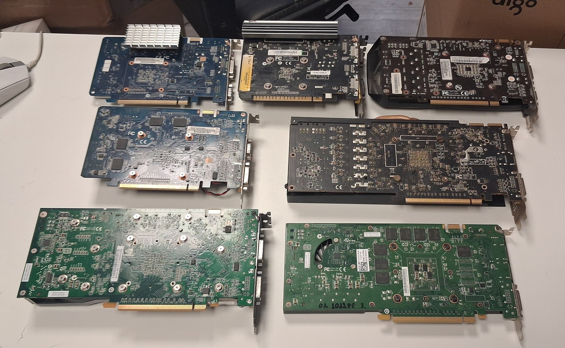 Eladó egyben a képeken látható 7 db hibás videokártya. Vagy hibásan, vagy sehogyan nem adnak képet.