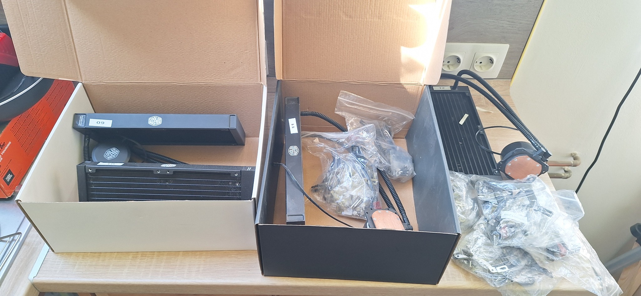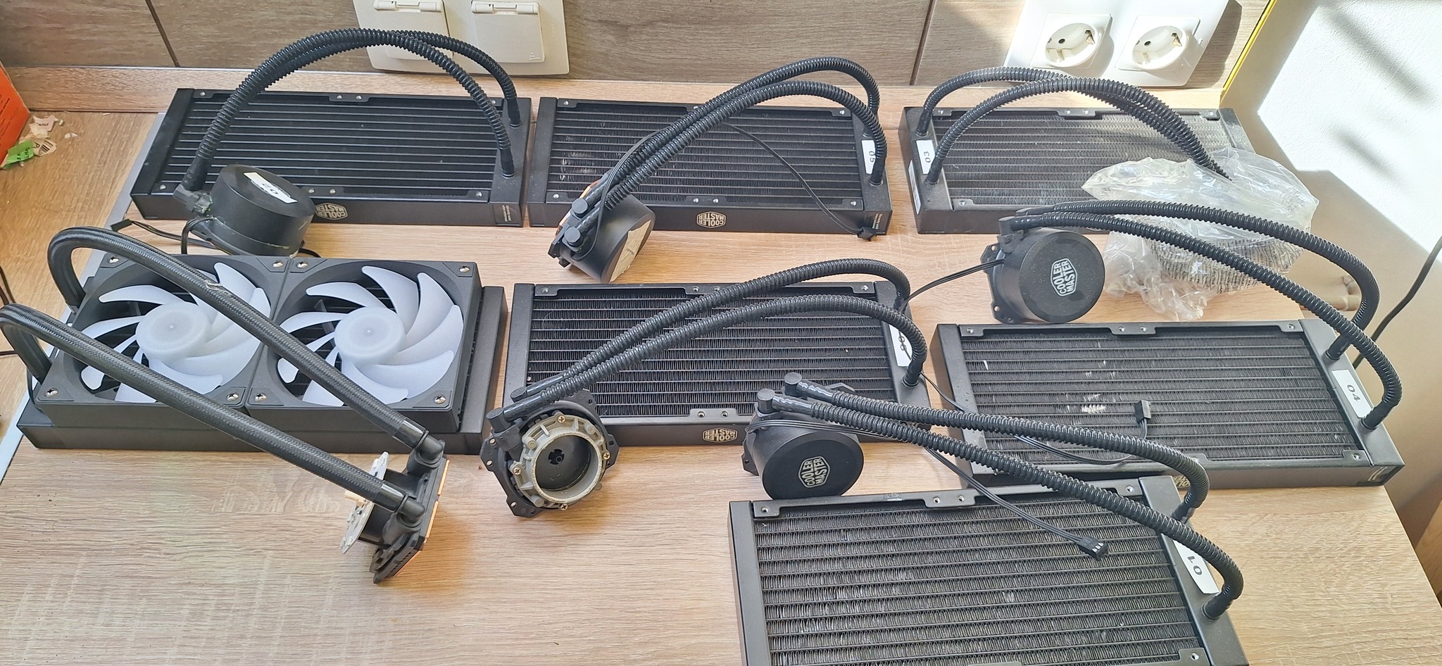 Ami jónak tűnik az vagy ereszt vagy valami nyűgje van pl. levegős, hangos. A keringető pumpa 80%ban nem működik. Van ami preparált, forrasztgatott stb. Vannak hozzájuk leszorító szerelvények de nem biztos hogy kompatibilis. Cooler master és egyéb noname kínai típusok vegyesen. A radiátorok azok amik lényegében használhatók. Ezekre vigyáztam bár, némelyiken kisebb sérülés akad.