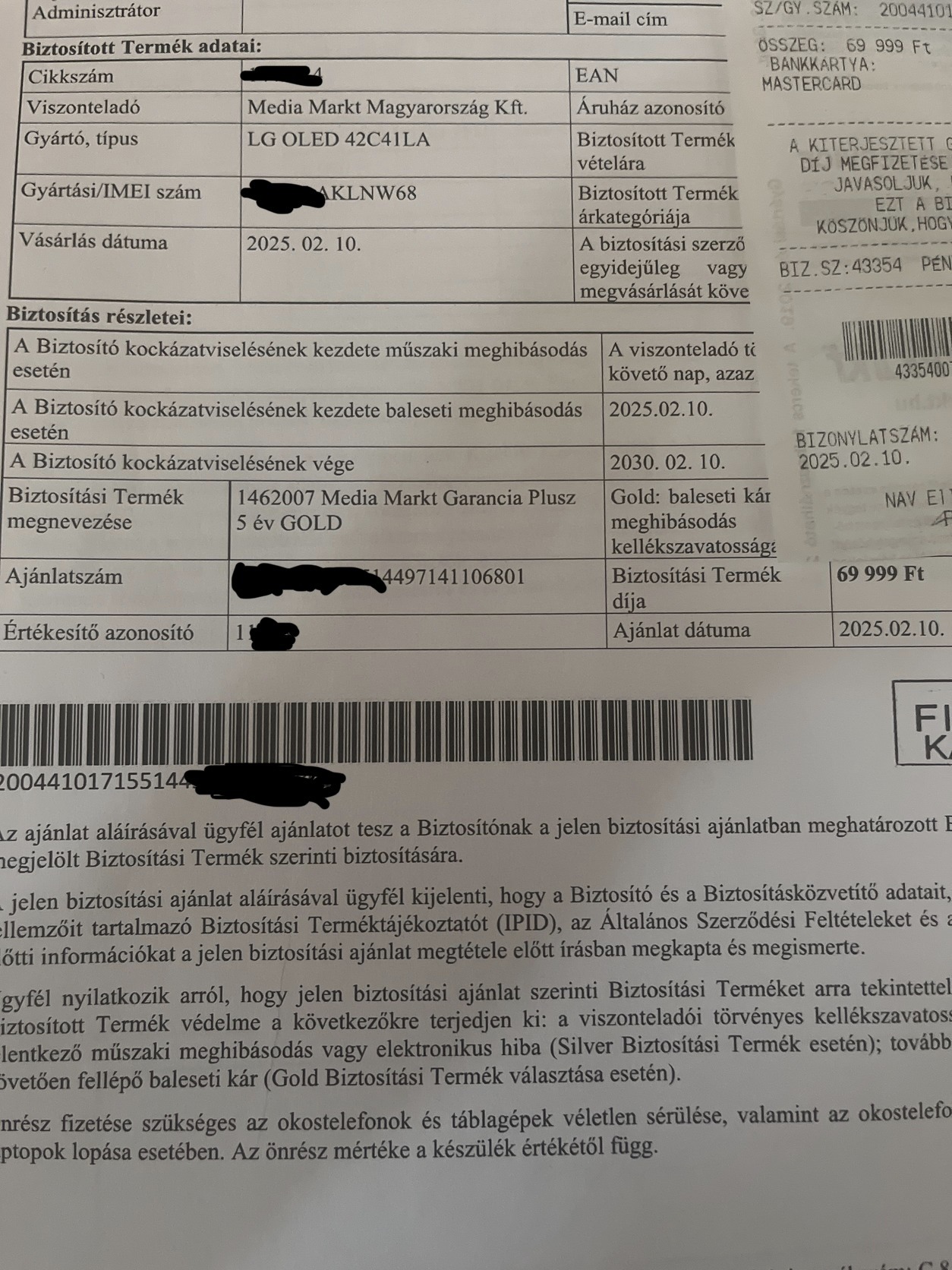 🛡️ MediaMarkt Gold biztosítás érvényes: 2030.02.10-ig (közel 4 év extra biztonság!)