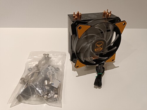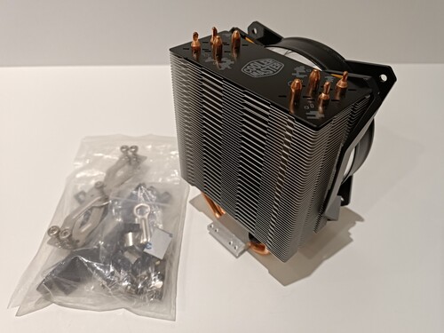 Eladó hibátlan állapotban lévő COOLER MASTER MASTERAIR MA410P TUF GAMING EDITION toronyhűtő AMD AM4-ig és INTEL LGA1200-ig felszerelhető.
