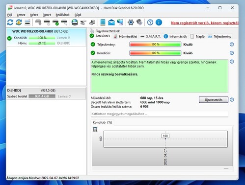 Eladó hibátlan állapotban lévő WESTERN DIGITAL 1TB WD GREEN WD10EZRX 3.5" 5400rpm 64MB SATA merevlemez a képen látható üzemidővel.