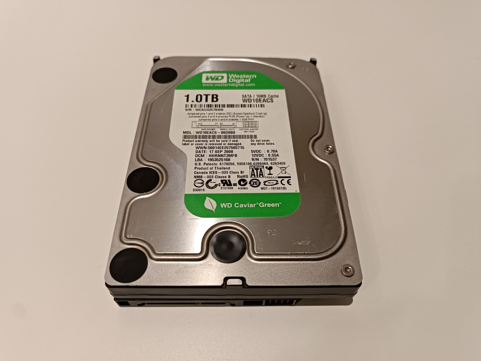 Eladó hibátlan állapotban lévő WESTERN DIGITAL GREEN 1TB 16MB cache 7200rpm SATA 3.5" merevlemez.