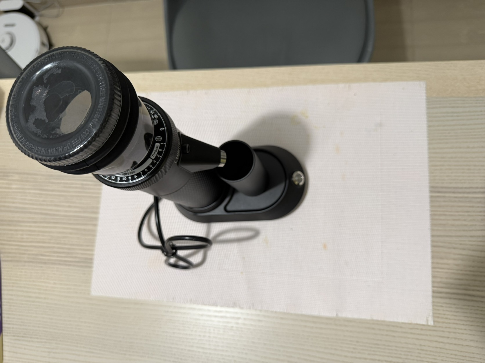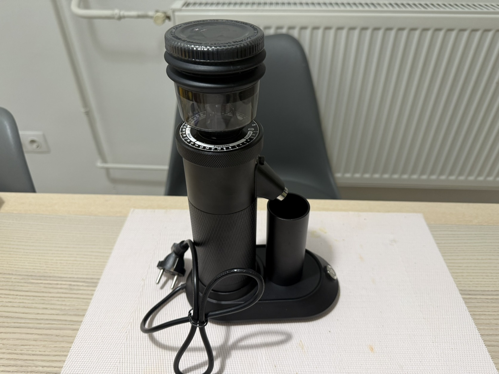 A hozzáadott őröltkávé edény stabilan, mágnesesen rögzíthető a darálóhoz