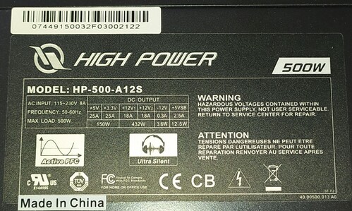 High Power 500W tápegység SATA / 2xPCI-E