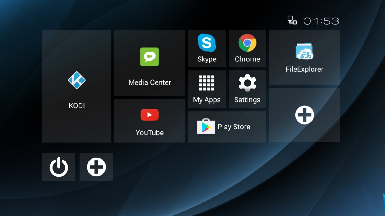 Javasolt médialejátszó-szoftver: KODI, Media Center (előre telepítve)