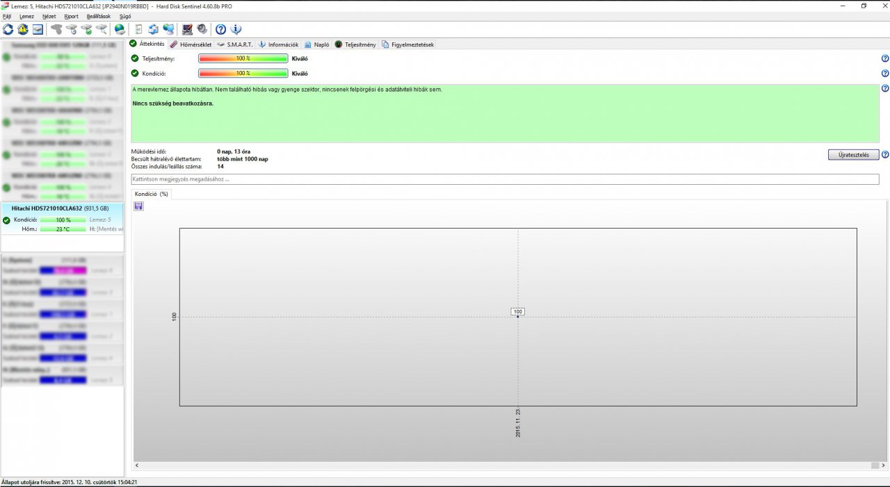 Hitachi 1 TB 7200 RPM (13 órát ment eddig összesen) 100/100