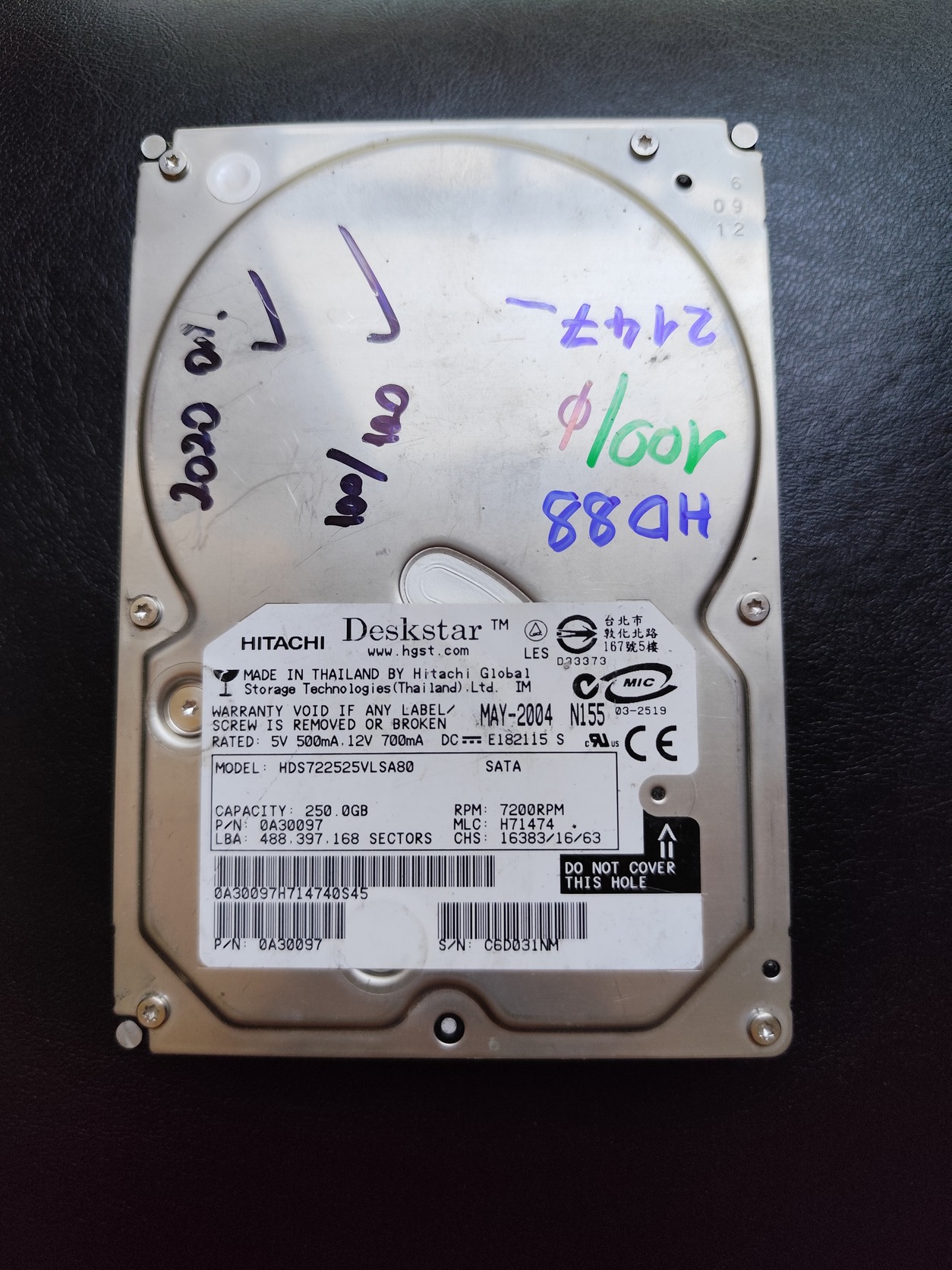 Hitachi 250GB merevlemez HDD