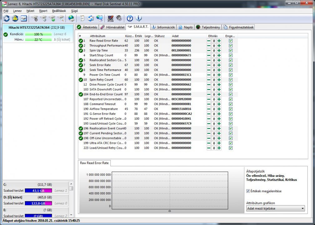 HDD Sentinel értékek a mellékelt fotókon.