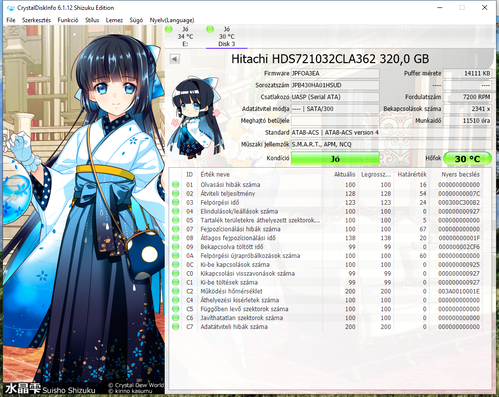 Eladó egy hibátlan SATA2 3.0Gb/s sebességű asztali hdd. HD Sentinel és Crystaldisk Info képek mellékelve.